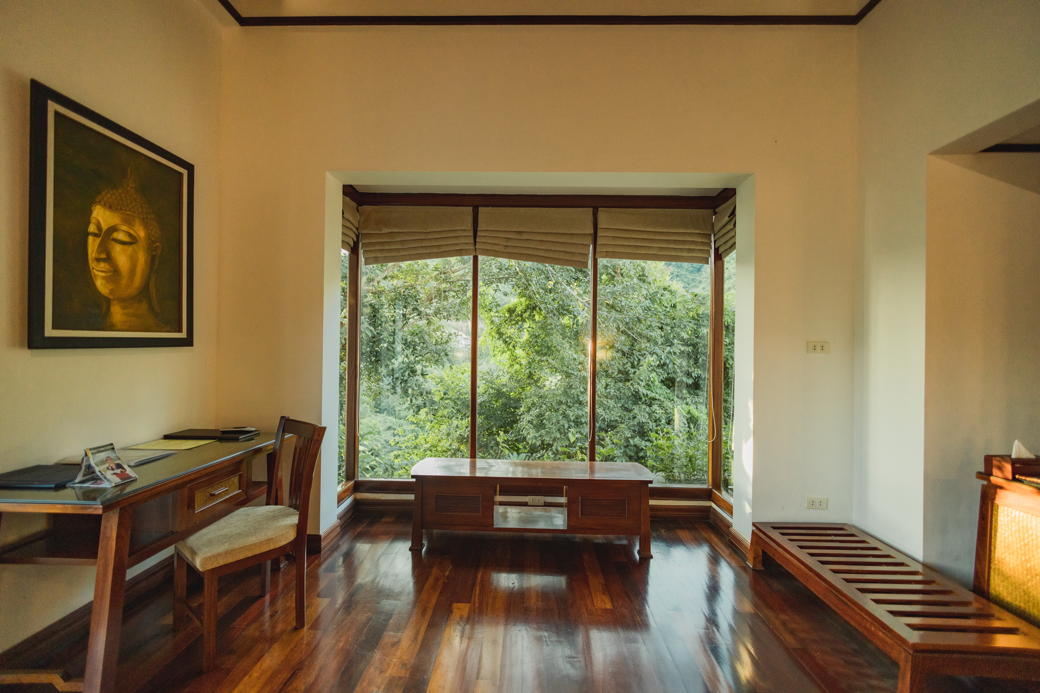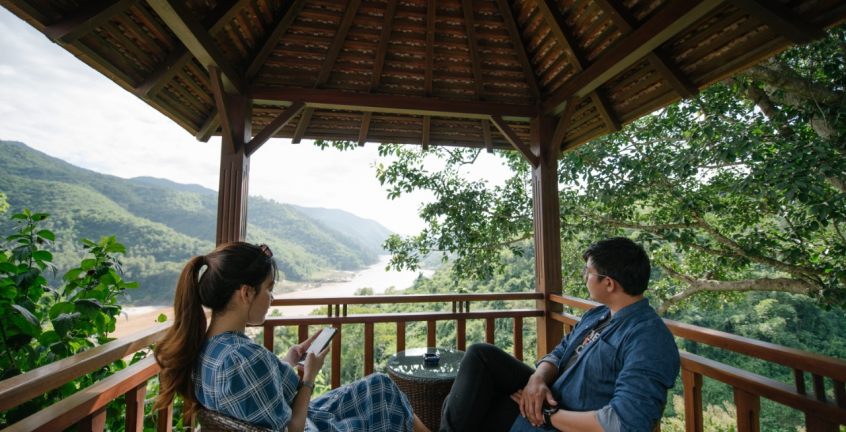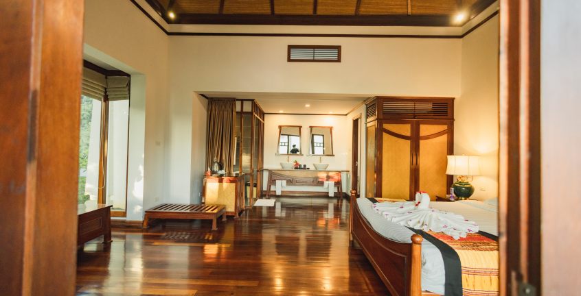 Spacious, elegant and serene, the State Room or Governor Suite is among the most lavish of all northern Laos hotels and a desirable choice of accommodation. The palatial suites comprises a bedroom and spacious outdoor living area, relax in the Jacuzzi which nestles under the shade of a tree as you breathe in the fresh mountain air. Admire a wonderful vista, both from your private terrace and inside from the floor to ceiling windows. An interior of imaginative, contemporary style reflects a true sense of destination. Elegant furnishings of a sofa, armchair with foot stool and a writing desk invite you to relax and feel refreshed by a soft river breeze drifting in from the terrace. The opulent bathroom offers ample space and luxury amenities for couples.